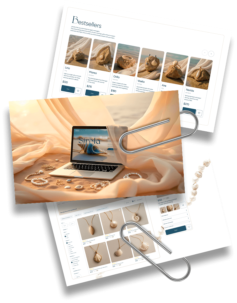 Description:   SIRELA is an imaginary brand inspired by lightness, coastal romance, and storytelling. I created the brand concept, voice, structure, and visuals — blending UX logic with artistic flair. AI tools were used to generate visuals and enhance the poetic narrative. Every element — from color palette to imagery — works as a unified concept.